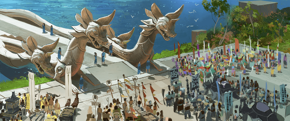 Un fiume a forma di drago, che collega diverse regioni abitate da popolazioni simili, ma allo stesso tempo differenti. Questa era l’idea iniziale dell’ambientazione per Raya, e non deve dunque stupire l’immediato collegamento mentale con il fiume Mekong, che collega la Cina con il sud est asiatico, andando ad attraversare diversi stati tra cui Vietnam, Thailandia, Laos, Cambogia e Myanmar (o Birmania).