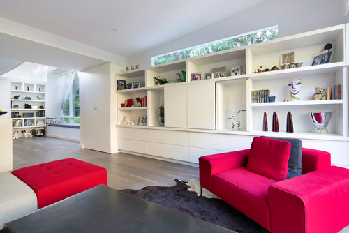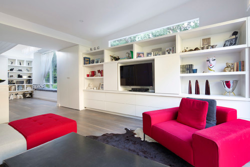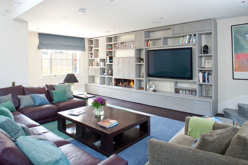 ITA. Se invece volete provare una soluzione asimmetrica, perché avete un animo più artistico o magari perché lo spazio a vostra disposizione non vi permette di mettere la tv al centro del muro del soggiorno, vi consiglio di usare un mobile basso nella parte sottostante la tv, mentre sul lato accanto ad essa far costruire dei mobili a parete o delle mensole per riempire la parete e creare tanti scompartimenti per libri e altri oggetti da esporre/sistemare.