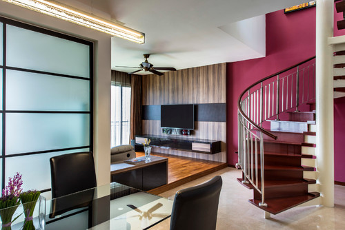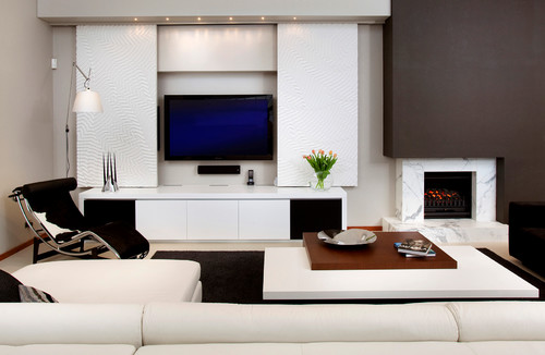 THAI. คุณสามารถเลือกที่จะออกแบบผนังเฉพาะทีวี ทำให้ออกจากผนังเดิมไม่กี้ซม. แบบนี้จะได้ให้ดูมีมิติมิติขึ้น สามารถแอบสายไฟและปลั๊กหลังทีวี และเพิ่มชั้นวางของเพื่อวาง เครื่องอ่านดีวีดี หรืออื่นๆ ปกติผนังนี้ตกแต่งดัวยสีและลาย ที่ไม่เหมือนกับผนังเดิม – ส่วนใหญ่ผนังเดิมทาสีขาวและเน้นเล่นสีที่ผนังใหม่