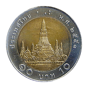 I 10 Baht assomigliano molto ai 2 Euro, ed è composto da un anello argentato intorno ad un cerchio centrale dorato.