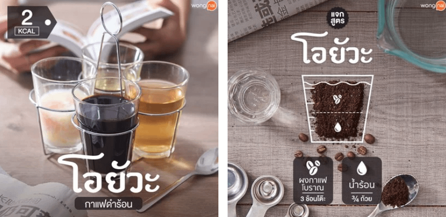 Oyua ( โอยัวะ ) è usato per indicare un caffè nero e caldo, senza zucchero né latte.