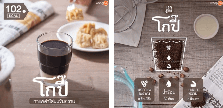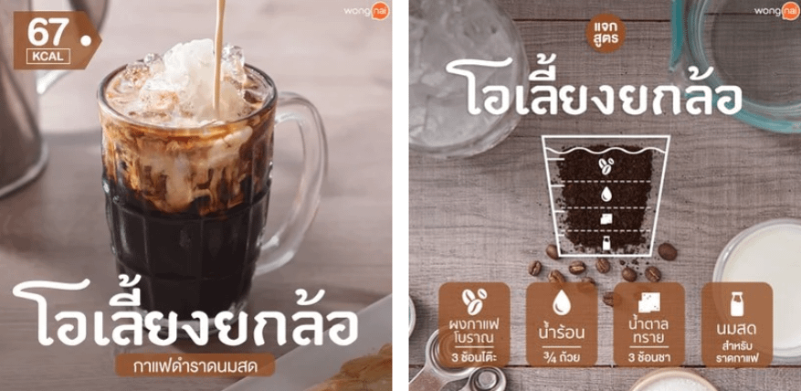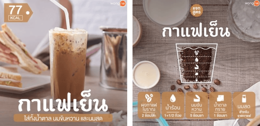 Prima abbiamo visto che Oliang e Oyua sono due caffè neri puri, che possono eventualmente essere addolciti con lo zucchero. Ma esistono altre due nomenclature conosciute dai thailandesi che amano le bevande dolci.