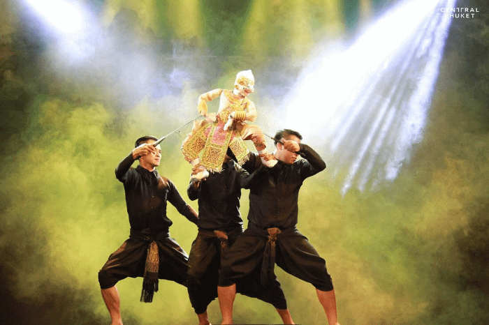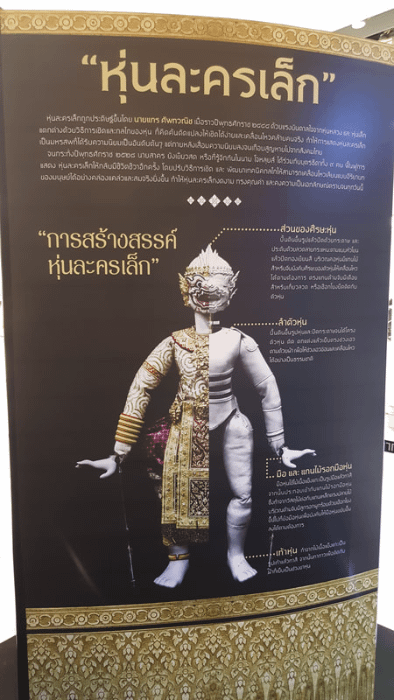 Inoltre è da notare come i burattinai compaiano direttamente in scena: per il teatro thailandese, chi muove la marionetta non deve nascondersi, ma ha il diritto di entrare in scena con il suo personaggio, come comparsa silenziosa e come ombra. Ed è per questo che i burattinai sono vestiti di nero: in netto contrasto con i brillanti costumi di scena, ma anche per “nascondersi”, ed effettivamente, se vi concentrate solo sulla marionetta, vedrete i burattinai passare in secondo piano, fino a “sparire” e lasciare spazio solo alla storia e ai suoi protagonisti.