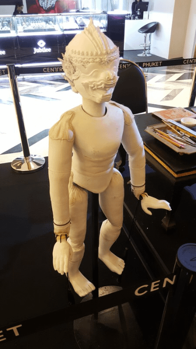 Molte volte sono gli imprevisti a offrirci le migliori occasioni nella vita: lo scorso sabato, dopo un pomeriggio di commissioni, mentre ci dirigevamo verso il parcheggio del nuovo centro commerciale di Phuket, il Central Phuket Floresta, siamo finite nel “dietro le quinte” del palco allestito nella parte centrale, solitamente adibita alle esposizioni/esibizioni. E il retro del palco era pieno di marionette di ogni forma e dimensione.