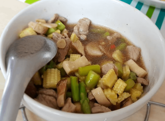 - Aggiungere un cucchiaio di salsa di ostriche, un cucchiaio di salsa di soia e 4 cucchiai di acqua – mescolate e assaggiate: se ritenete sia troppo “insipido” aggiungete ancora un cucchiaio di salsa di soia o di ostriche, ma fate attenzione che non diventi troppo dolce o troppo salato!