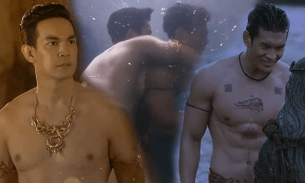 2 piccole precisazioni: a questo punto non ho capito né di chi fosse figlio questa creatura – presumibilmente di Jiao Mae Nakee e del guerriero Thassathorn, ma non c’è stata una scena in cui si dicesse chiaramente che lei era incinta, dopo che lui era partito per la guerra. Dopo la morte del guerriero, avvenuta in battaglia, si scopre che lei ha partorito questa creatura e che la deve nascondere.