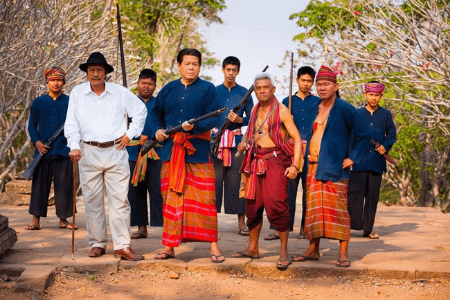 gli abitanti del villaggio e il padre di Pim, vestito di bianco sulla destra, che rimase ferito durante il primo attacco della Jiao Mae Nakee nella prima puntata della serie. dalla parte opposta, il padre di LamJiak che rubò l’anello benedetto al padre di KamKaew, anello che gli permise di sopravvivere alla Phaya Nak