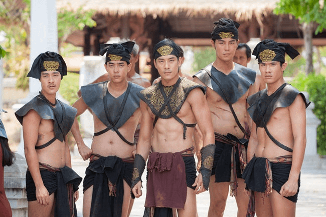 Thassathorn e i suoi amici nella vita precedente, nelle “uniformi” da guerra