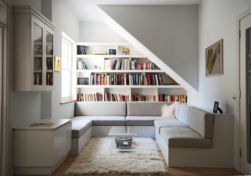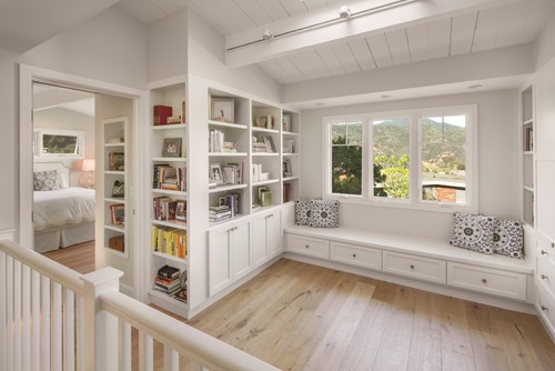 THAI. ดังนั้น พื้นที่ที่เราจะชอบที่สูดไม่ได้เป็นห้อง แต่เป็นมุมที่เรียบง่ายในทางเดิน หรืออาจจะอยู่ที่ชั้นพักของบันได แต่ความจริงคือ สามารถออกแบบพื้นที่ใต้บันไดให้ดูดีและอบอุ่น ในภาพด้านบนนี้ เราจะได้เห็นว่า มุมอ่านหนุ่งสือถูกสร้างที่ชั้นบนของบ้าน ระหว่างห้องนอนและบันได พื้นที่นี้ออกแบบให้ใช้ประโยชน์ โดยเพิ่มลิ้นชักใต้ที่นั่งใต้หน้าต่าง ถ้ามีโต๊ะที่พับได้ พื้นที่นี้สามารถเป็นมุมทำงานของคุณก็ได้โดยใช้แล็ปท็อป