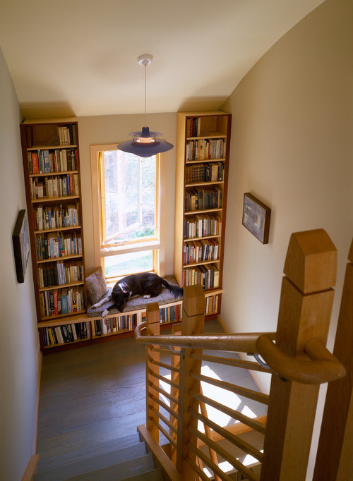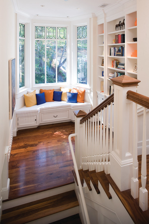 THAI. ทั้งสองไอเดียนี้ ออกแบบในพื้นที่ชั้นพักของบันไดตัว “U” นี้เป็นไอเดียที่เราชอบที่สุด ด้วยเพราะดูเหมือนพื้นที่ส่วนตัวที่คนสามารถนั่งเล่นอ่านหนังสื้อ และดื่มชาร้อน อีกเหตุผลคือการออกแบบนี้ ทำให้เจ้าของบ้านได้ใช้พื้นที่นี้ให้มีประโยชน์ ถ้าสนใจำอเดียนี้ อย่าลืมตรวจขนาดของชั้นพักของคุณด้วย ต้องใหญ่พอเพื่อสร้างเฟอร์นิเจอ และ ยังมีพื้นที่สามารถเดินขึ้นลงบันไดให้ได้